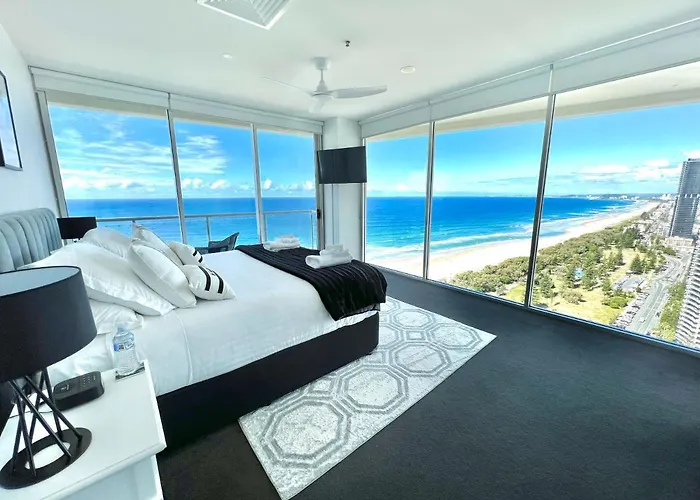 The spacious 3-bedroom Air On Broadbeach Beachfront 2Level Stunning Apartment With 180 Degree Views Gold Coast lies in the Macau Centre district of Gold Coast and offers swift access to Kurrawa Public Park, which is a mere 5 minutes' walk away. 800 m from the Gold Coast Convention and Exhibition Centre, this 232 m² apartment includes a private pool as well as a sauna.